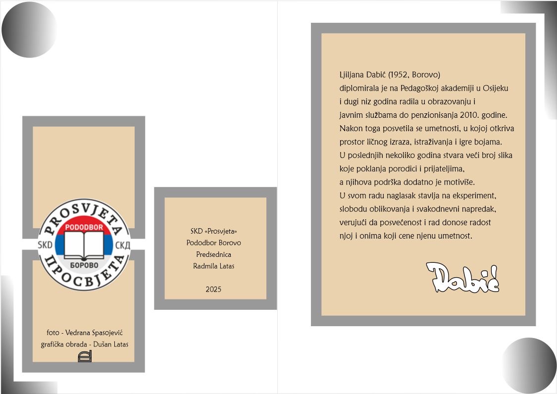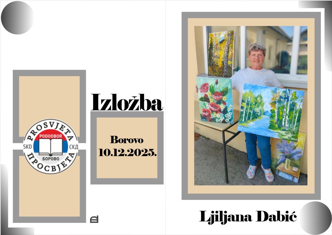Veče je obeležilo otvaranje prve izložbe slika gospođe Ljiljane Dabić iz Borova, članice Pododbora Borovo. Njene slike, pune duše i boja, privukle su veliku pažnju i oduševile prisutne.
