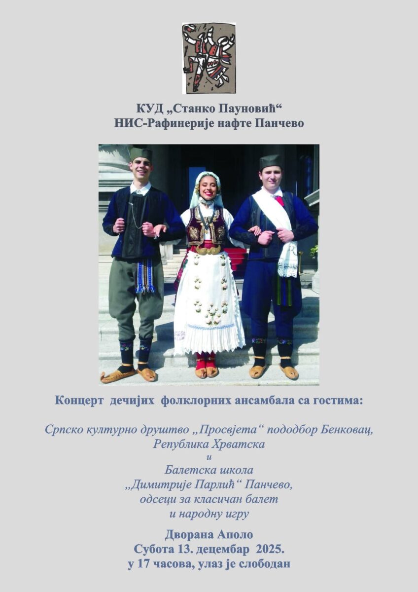 20. 12. 2025.Od 12. do 14 .12 SKD “Prosvjeta” Pododbor Benkovac boravio je u Pančevu gdje je održao cjelovečernji koncert sa Igrama iz Bukovice i Ravnih kotara, Igrama iz Banije, Igrama Šumadije i Leskovca te pjesmama i recitacijama.